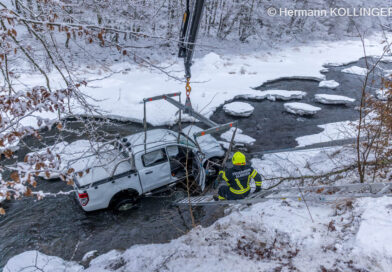 29.01.2026: Pickup in die Aschach gestürzt → Kran und Taucher nach Stroheim alarmiert