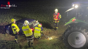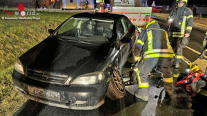 Mehr anzeigenDer Absturz eines Pkw über eine steile Böschung in ein Waldstück und eine in der Folge eingeklemmte Person nahe der