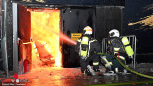 Die Teilnehmer mit Beistellung des Rüstlösch- sowie des Tanklöschfahrzeuges in zwei Gruppen eingeteilt und über die Handhabung von Strahlrohren, Hohlstrahlrohren Dachwasserwerfer, Bodenwerfer, Hydroschild, Belüftungsgerät samt Wasserauswurffunktion instruiert (Details einmal in einem späteren Beitrag).