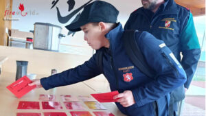 Mehr anzeigenEin Feuerwehrmann mit einem Helm samt Brille, der in der Luft mit seinen Fingern gestikuliert. Das war ein typisches Bild