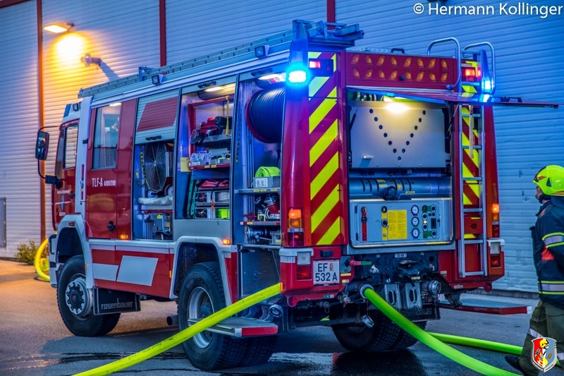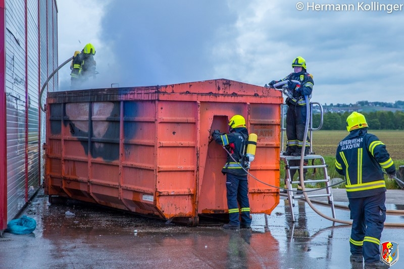Um 05.13 Uhr des 15. Mai 2019 wurden die beiden Alkovener Feuerwehren zu einem Containerbrand bei einem Gebäudekomplex zweier Betriebe in Alkoven alarmiert. Schon bei der Anfahrt zum Feuerwehrhaus war von dort eine emporsteigende Rauchsäule zu erkennen.