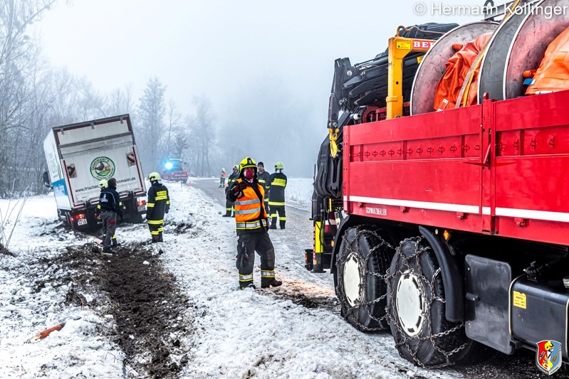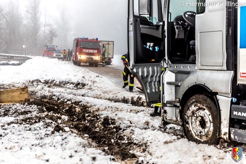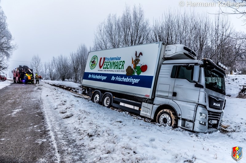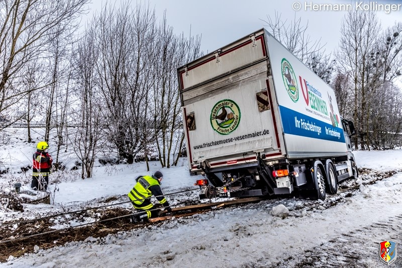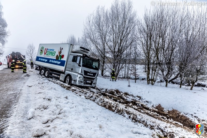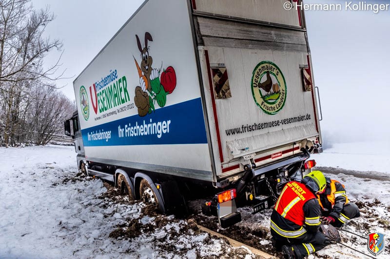21.01.2021: Dreiachs-Lkw-Bergung aus Feld in Hinzenbach