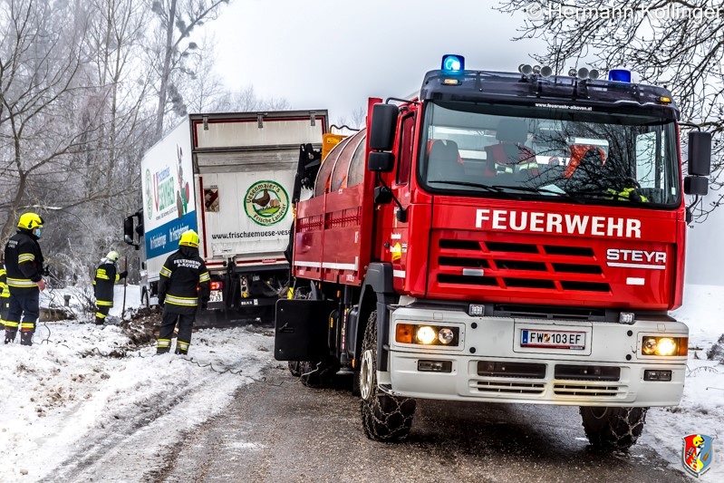 In die Gemeinde Hinzenbach wurde die Freiw. Feuerwehr Alkoven am Morgen des 21. Jänner 2021 über die Landeswarnzentrale in Linz alarmiert. Anlass war ein Assistenzeinsatz für die dortige Feuerwehr bei der Bergung eines Lkw.