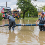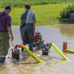 Neuerlich gelangte man mit den Stromverbrauchern trotz dreier Notstromaggregate vor Ort ans Limit (das 30 kvA-Stromaggreagat durfte ja laut Verbandsvorgaben nicht ins neue Fahrzeug mit rein). Kurzfristig wurde somit das 100 kvA-Stromaggregat der Feuerwehr Prambachkirchen angefordert. In der Zwischenzeit erfolgte eine Optimierung des Pumpeneinsatzes bzw. trat der sichtbare Erfolg (Wasserrückgang) rascher ein als vermutet.