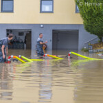 Ein Einsatz in der Ortschaft Aham forderte die Kräfte dann jedoch über einen längeren Zeitraum. Über ein Feld floß kontinuierlich Wasser auf ein etwas tiefer liegendes Wohnhausgrundstück. Die steigende Zuflussmenge war dann nach und nach so groß, dass die Besitzer es nicht mehr schafften, das Wasser über den Sickerschacht mit einer eigenen Pumpe abzupumpen. Die komplette Hauszufahrt bzw. Garage samt Kellerraum wurden überflutet.