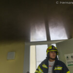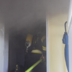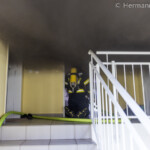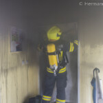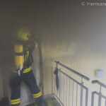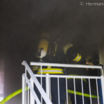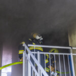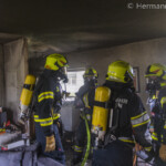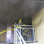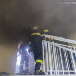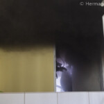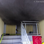Aufgrund von zwei offenen Türen konnte der Brandrauch ungehindert ins Stiegenhaus dringen, füllte dieses jedoch in klassischer Weise von oben her, so dass sich die Rauchgrenze dennoch erst unmittelbar im betroffenen Stockwerk befunden hat. Der vorrückende Atemschutztrupp drang in die erste Räumlichkeit vor, musste da dann feststellen, dass es sich hierbei um einen Raum zum Balkon handelt, so dass hier dann die Räumlichkeiten hinter der zweiten Tür den Brandherd darstellen mussten.