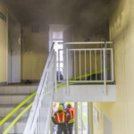 In der Zwischenzeit wurde von weiteren Kräften bis zur Rauchgrenze ein Rauchvorhang beigestellt, der von einem der Atemschutzmännern schließlich angebracht und den weiteren Rauchaustritt ins Stiegenhaus eindämmen sollte.