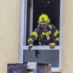 Eine Dame aus der Nachbarwohnung hatte ihre Wohnungstür vorbildlich mit nassen Handtüchern versehen, um das Eindringen des Rauchs aus dem Stiegenhaus zu versehen. Über eine Steckleiter wurde die Frau schließlich über Einheiten des Rüstlöschfahrzeuges betreut und da das Abklettern über die Leiter mehr Risiko bedeutet hätte als das Abwarten in der völlig rauchfreien Wohnung, wurde diese bis zum Ablöschen des Brandes dort betreut.