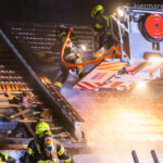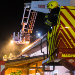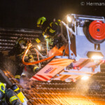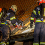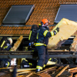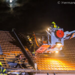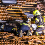 In weiterer Folge war es erforderlich, Teile der Dachkonstruktion von außen als auch von innen zu öffnen, um ein weiteres Ausbreiten des Brandes auf den Dachstuhl und eine „Davonlaufen“ des Feuers zu unterbinden. Teilweise mit Rettungssägen (Spezialsäge, die sich auch durch Blech und Nägel schneidet) erfolgten das Öffnen und das Ablöschen der betroffenen Dachbereiche.