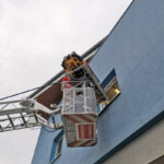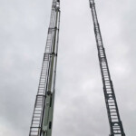 Gestartet wurde der Schulungsvormittag mit einer kleinen Theorieeinheit, wo es generell um die Einsatzbarkeit der Hubrettungsgeräte der Feuerwehren ging und welche Tätigkeiten die Feuerwehr-Höhenretter erledigen können, wenn es darauf ankommt.