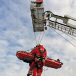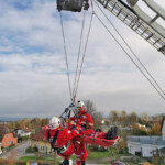 Ebenso wurde geschult, dass der Notfallsanitäter sich zur erforderlichen Betreuung des Patienten ebenso mit am Seil befindet und den luftigen Transport begleiten muss.