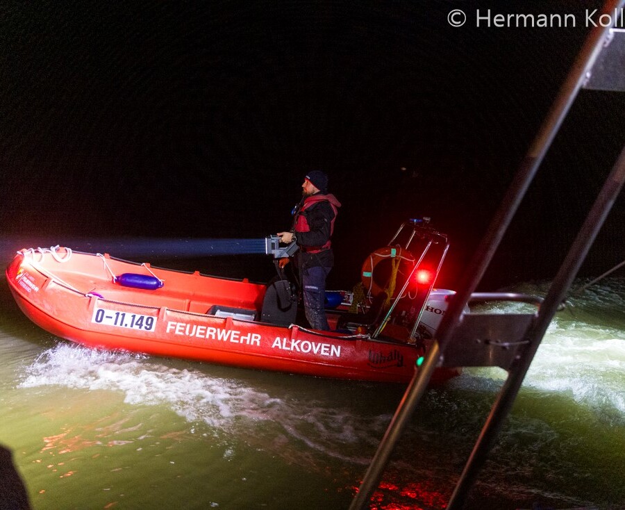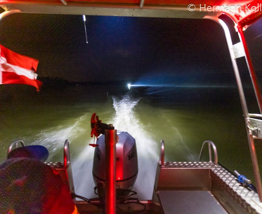 Eigentlich war es die Nacht der Polarlichter – diese hatten sich leider zum Zeitpunkt der Übung jedoch schon wieder verzogen und waren am dunklen Donauhimmel nicht mehr zu sehen. Außergewöhnlich war die Einsatzübung aber dennoch. Ebenso herausfordernd, da das Arbeiten am Gewässer in der Dunkelheit dann doch nicht alle Tage am Plan steht.