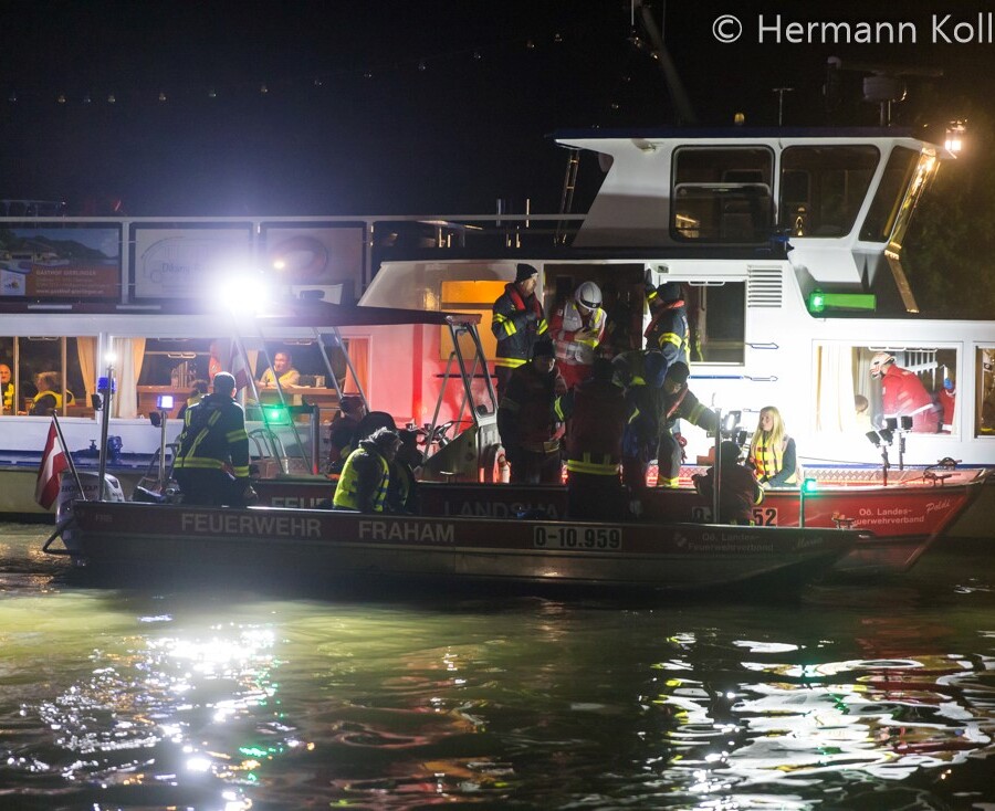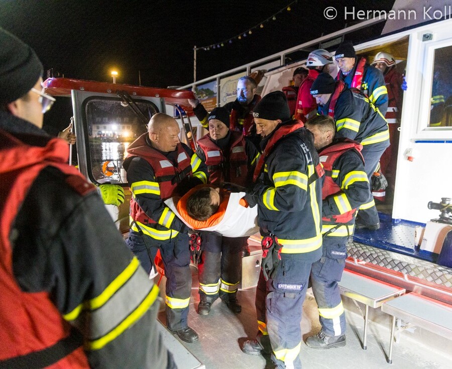 Ebenfalls wurde Sanitätspersonal vom Ufer auf das Schiff gebracht. Die Feuerwehr Alkoven war im Zeitraum von etwa 1 Uhr bis 5 Uhr morgens mit dem Whally (Sicherungsboot mit Tauchern für den Fall eines realen Zwischenfalls) und dem Arbeitsboot mit eingeteit. Mehrere Transporte von Leichtverletzten aber auch Schwerverletzten (Liegendtransport) wurden im Zuge dessen vorgenommen.