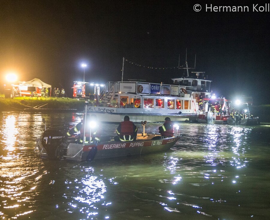 Donau-Übungseinsatz in der Nacht auf den 11. Mai 2024. Im Zuge einer 24-Stunden-Übung des Roten Kreuzes fand auch eine Übung in Höhe von Brandstatt (Pupping) statt, wo angenommen war, dass es nach einem Brand auf einem Schiff viele Verletzte geben würde.