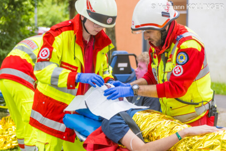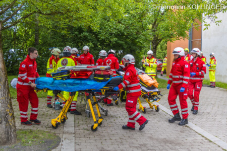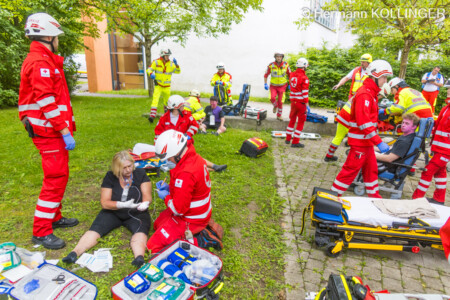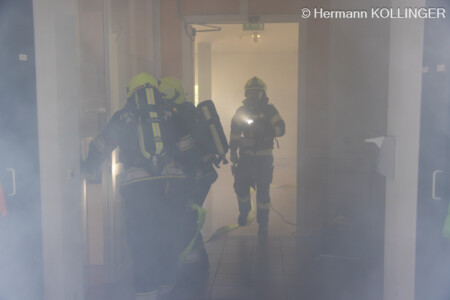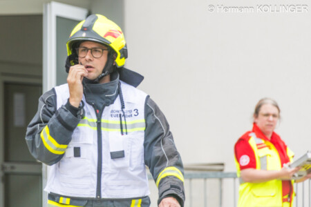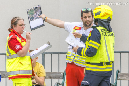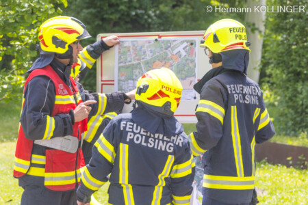 Mit im Szenario verpackt war selbstverständlich auch der Rettungsdienst, wobei hier sowohl der Samariterbund als auch das Rote Kreuz im Einsatz standen und die fiktiv Verletzten versorgt haben. Neben der Institutsleitung stand auch Bürgermeisterin Mag. Monika Rainer-Weberberger im Einsatz. Landes-Feuerwehrkommandant-Stellvertreter Michael Hutterer verfolgte das Geschehen ebenso live vor Ort und machte sich ein Bild über die Evakuierungs- und Einsatzmaßnahmen. Alle Abläufe liefen in der Einsatzleitung zusammen, die von der Feuerwehr Polsing gemeinsam mit der Einsatzführungsunterstützung der Feuerwehr Axberg aufgebaut worden ist. Ebenso mit dabei waren Bezirks-Feuerwehrkommandant Thomas Pichler sowie Abschnitts-Feuerwehrkommandant Huber Straßer.