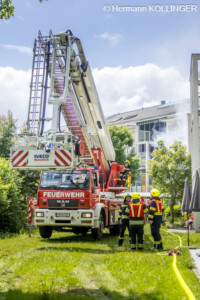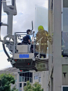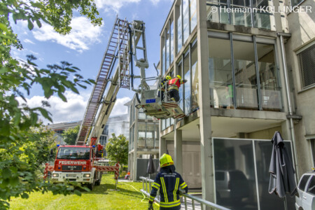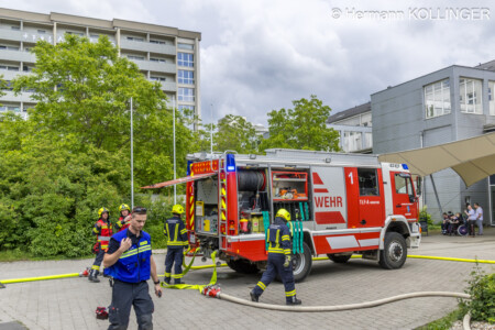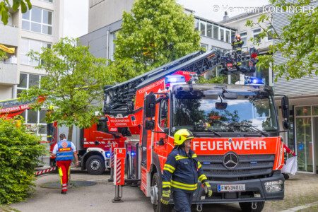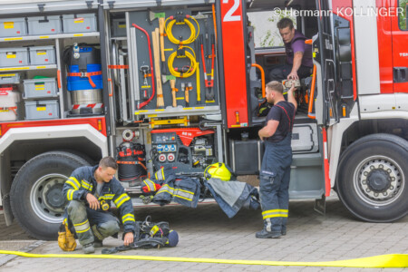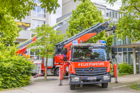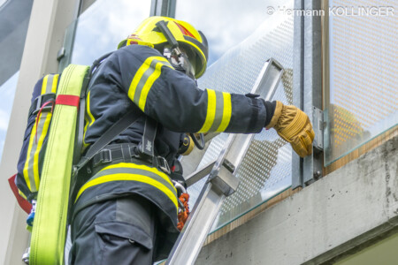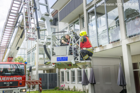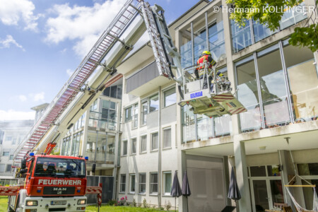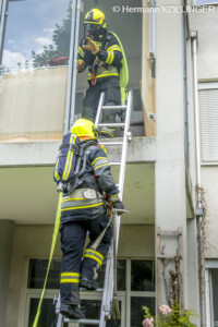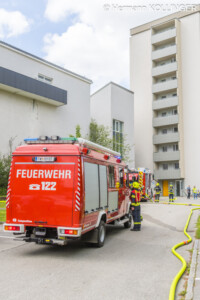 - Während der Einsatz läuft, kommt es in einem Bauteil im vierten Stock zu einem weiteren Zimmerbrand. Auch diesen galt es im laufenden Evakuierungsbetrieb abzuarbeiten.