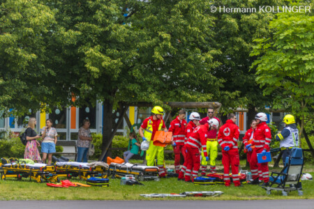 An die 170 Einsatzkräfte hatten am Nachmittag des 25. Mai 2024 ihren Übungsort im Institut Hartheim in Alkoven. Anlass dafür war eine Einsatzübung für insgesamt neun Feuerwehren sowie Sanitätern des Samariterbundes und des Roten Kreuzes.