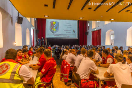 Nach der Abarbeitung der Aufgaben stand für die Gruppenkommandanten und Führungskräften bei der Einsatzleitung eine erste Nachbesprechung an, wo es primär darum ging, Auffälligkeiten bzw. Verbesserungspotenziale bekanntzugeben, um diese künftig nach Möglichkeit zu berücksichtigen. Der Kultursaal beim Schloss Hartheim war dann die letzte Station. Neben der Verpflegung aller Teilnehmer, die dankensweiter Weise das Institut Hartheim übernommen hat, gab es für alle Teilnehmer noch eine kurze Zusammenfassung über die Übung, um allen über alle Stationen einen Überblick zu bieten. Zu einem späteren Zeitpunkt erfolgt dann eine interne Nachbesprechung mit dem Institut Hartheim.