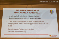 Feuerwehrkommandant Martin Burger informierte – in weiterer Folge auch die Frau Bürgermeisterin – über wesentliche Fakten bzw. dem Stand der Dinge zu, Neubau, über den wir online schon berichtet hatten. Der Finanzierungsplan steht nun, die Ausschreibungen sind zum großen Teil bereits bei den Unternehmen, so dass der Baustart nun mit Quartal 1 / 2025 anvisiert wird.