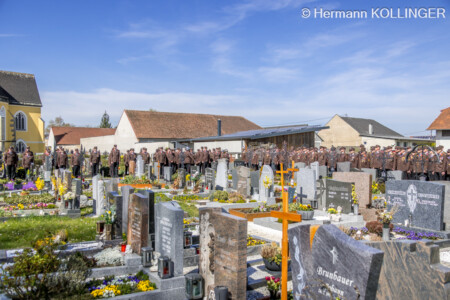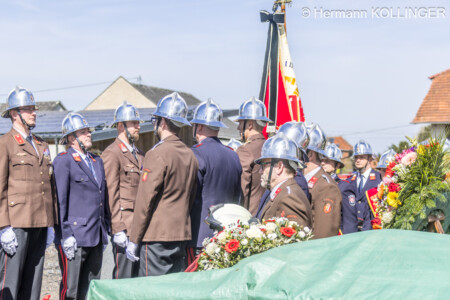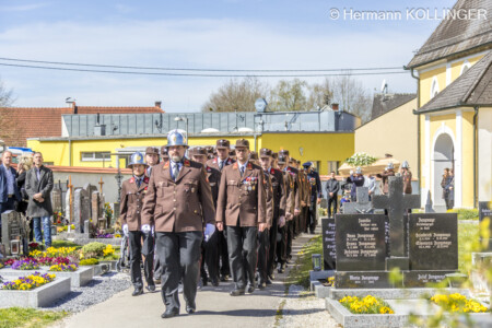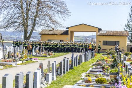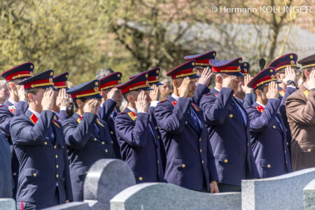 Gerade, als am Friedhof nach einer Ansprache des Diakons absolute Ruhe herrschte, ertönte schlussendlich nochmals – ohne Planung – das Sirenensignal der Feuerwehr – wie jeden Samstag um 12 Uhr – als angebrachte Einlage.
