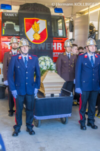 Fast akribisch wurde in der letzten Woche gemeinsam mit Vertretern der Berufsfeuerwehr Linz daran gearbeitet, Harald Unter einen würdevollen, allen voran jedoch aber auch ehrenvollen letzten Weg zu bereiten. Den einen oder anderen Punkt wusste Harald noch vor seiner Operation zu deponieren, sollte diese nicht so verlaufen, wie geplant… Ausgangspunkt war schließlich das Feuerwehrhaus Alkoven, wo zwei Feuerwehrleute der FF Alkoven und zwei der Berufsfeuerwehr Linz als Träger des Sarges eingeteilt waren. Im Zuge des Trauermarsches zur Kirche übernahm‘ der Pickup den Transport unseres Kameraden.