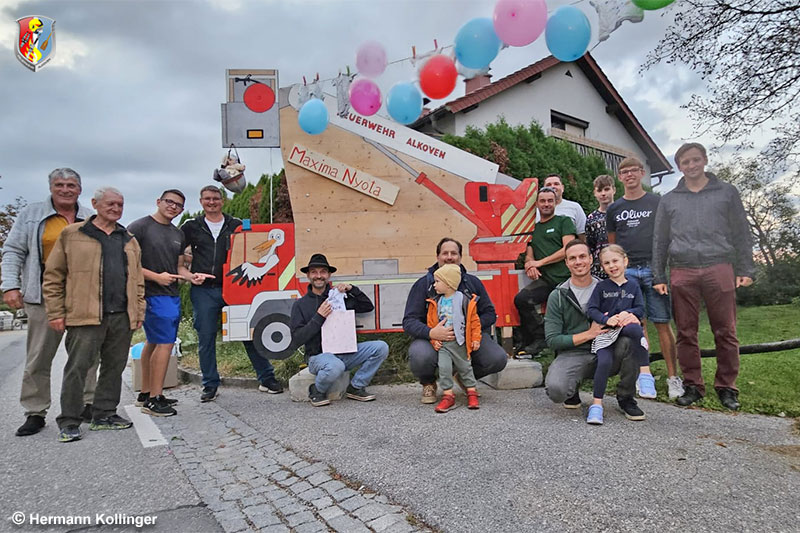 Der Feuerwehrstorch wurde aufgestellt und somit das sichtbare Zeichen des Mitfeierns der Feuerwehr nach außen hin gesetzt. Herzliche Gratulation auf diesem Wege nochmals zu Tochter Maxima Nyota, alles Gute!