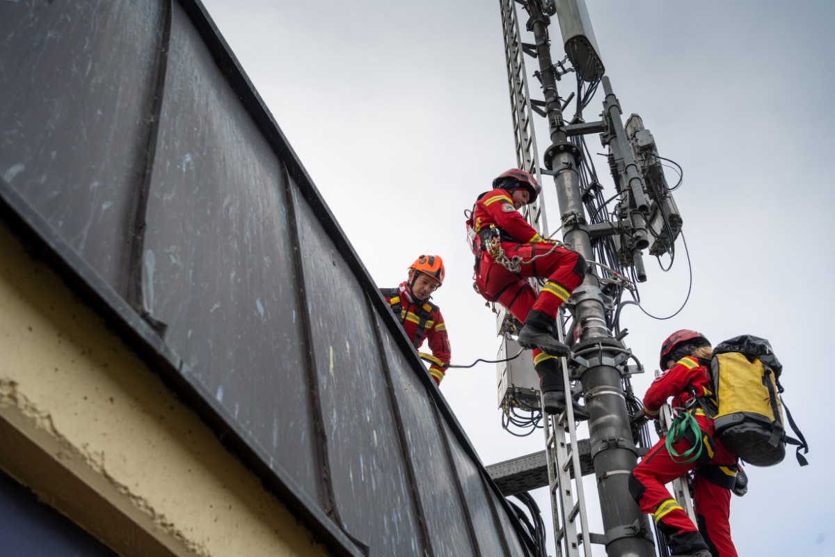 1. Techniker auf Handymasten (Cutseil-Rettung)