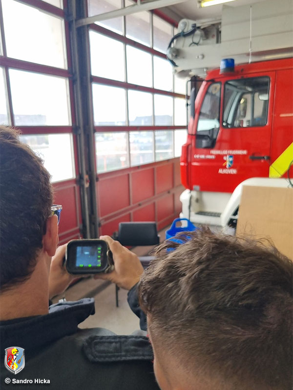 Weiters ging es dann mit einem Stationsbetrieb zum Thema Schlauchmanagement und Wärmebildkamera. Bei letzterem Thema wurde die Mannschaft vor allem auf mögliche Täuschungen hingewiesen z.B Spiegelung im Glas. Ebenso wurden die Einsatzbereiche der Wärmebildkamera erklärt und auch erweiterte Optionen wie die Kontrolle von Autositzen auf Restwärme, wenn Personen abgängig sein sollten.