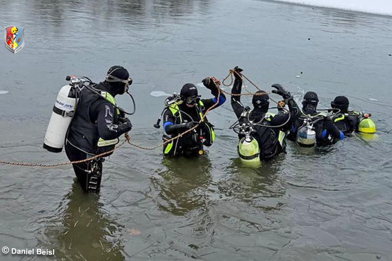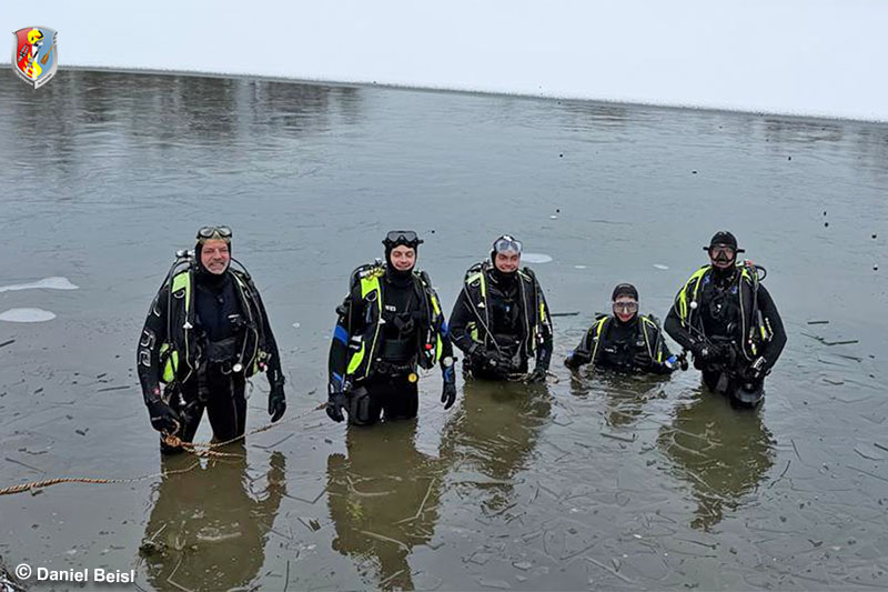 Die kalten Temperaturen lassen langsam nun auch die Radkovsky-Fischteiche in Bergham zufrieren. Ob nun herkömmlicher Tauchgang oder dann eben auch ein Eistauchen → Einsätze hatten die Alkovener Feuerwehrtaucher schon bei den verschiedensten Bedingungen zu bestreiten.