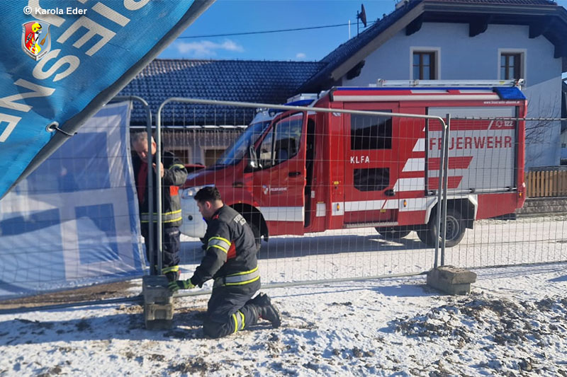 Dort stürzten im Bereich einer Wohnsiedlungsbaustelle mehrere Bauzaunelemente um und blockierten die Fahrbahn. Mit Muskelkraft wurden die Elemente wieder aufgestellt und entsprechend beschwert.