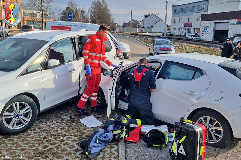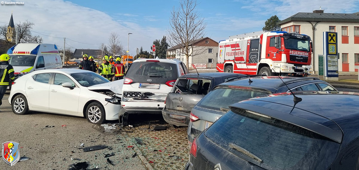Mit 09.34 Uhr wurden am Dienstag, dem 3. Februar 2026, die beiden Alkovener Feuerwehren zu einem Verkehrsunfall am Parkplatz gegenüber dem Feuerwehrhaus Alkoven alarmiert. Den Einsatzkräften bot sich ein doch schadensträchtiges Bild.