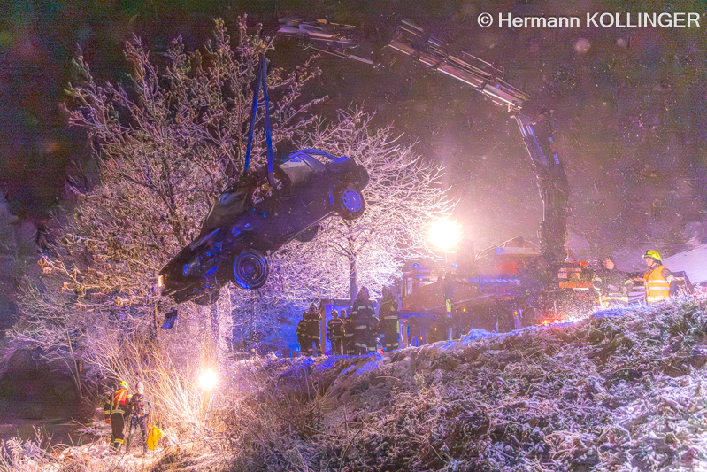 15.02.2026: Kran- und Taucher-Assistenz-Einsatz nach Pkw-Unfall in Hartkirchen