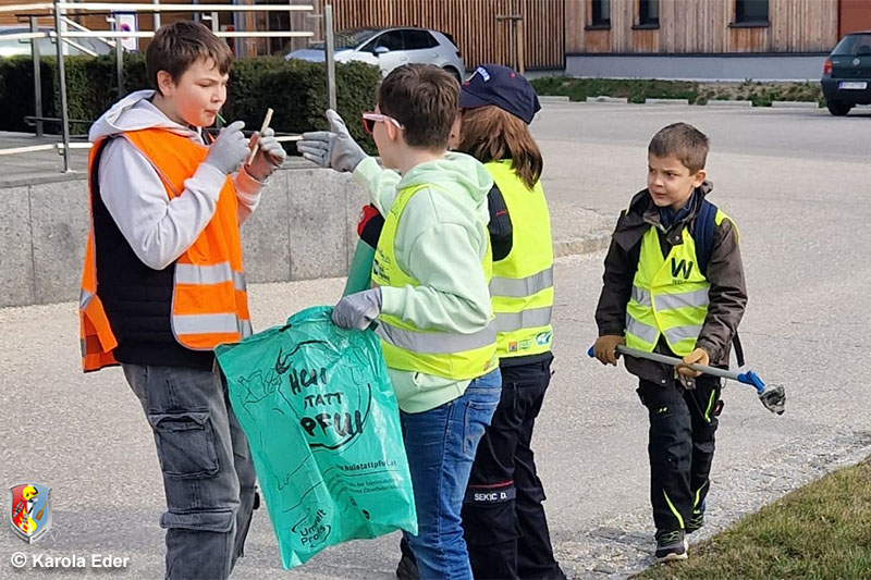 „Wir waren 20 Leute und mit dem Rüstfahrzeug sowie dem Kommandofahrzeug im Einsatz gewesen“, wird berichtet. Einsatzgebiet war mitm KRF und Kommando im Einsatz. Säuberungsgebiet war der Bereich von Polsing bis zum Spitzwirt. „Was uns aufgefallen ist: es sind kaum mehr Plastikflaschen und Dosen zu finden, der lästige Pfand hat auch was Gutes“, so das Feedback aus Polsing.