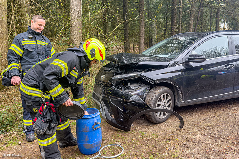 Die Aufgaben der Feuerwehr Polsing beschränkten sich in der Folge auf die Sicherung und das Abstellen des verunfallten Fahrzeuges. Da der Zustand des Autos ein händisches Verschieben zuließ, konnte dieses gesichert auf einem angrenzenden Waldweg abgestellt werden.
