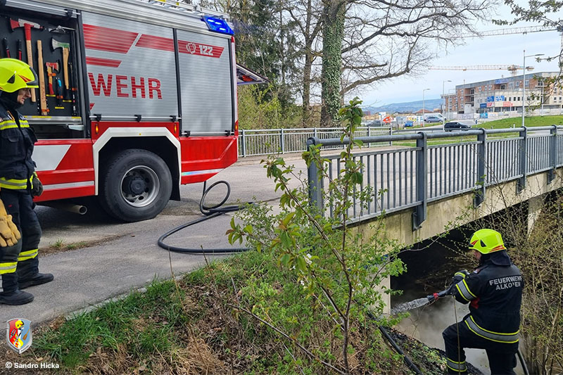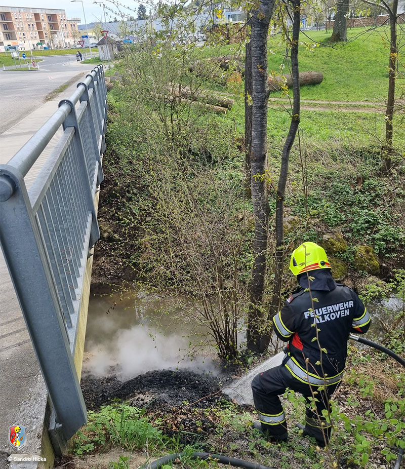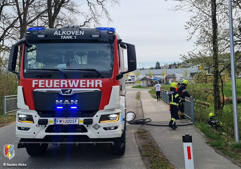 „Brand Gebüsch, Schneiderweg unter der Brücke“ – das waren am Donnerstag, dem 9. April 2026, um 10.22 Uhr die Einsatzstichworte, mit dem die beiden Alkovener Feuerwehren von der Landeswarnzentrale in Linz alarmiert worden sind.