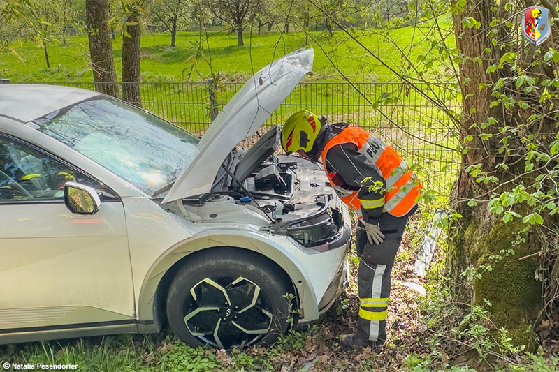 17.04.2026: „Rauchentwicklung“ an Elektroauto nach Anstoß an Baum in Ufer