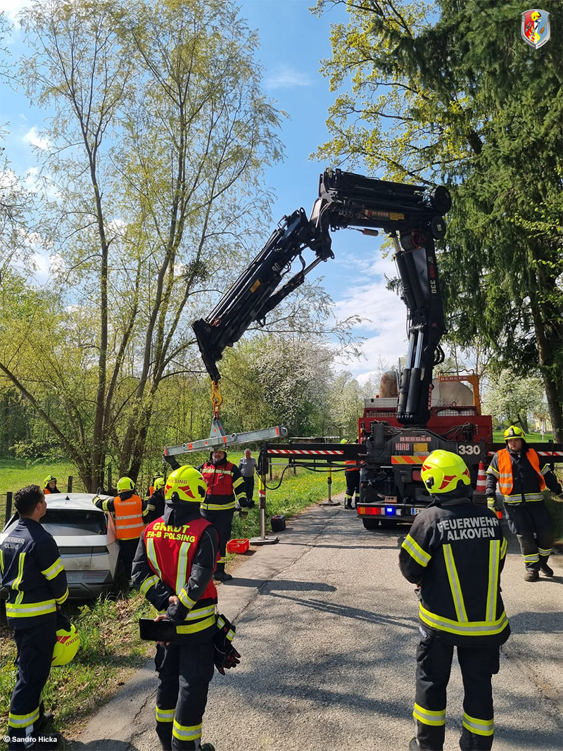 Um 13.30 Uhr wurden die Feuerwehren Alkoven und Polsing am Freitag, dem 17. April 2026, über die Landeswarnzentrale zu einem Elektroautobrand in die Ortschaft Ufer alarmiert. Beim Ausrücken erfolgte die Korrektur der Meldung, dass es sich um einen Verkehrsunfall handelt und die Rauchentwicklung auf die ausgelösten Airbags zurückzuführen sei. Ein Brand läge definitiv nicht vor.