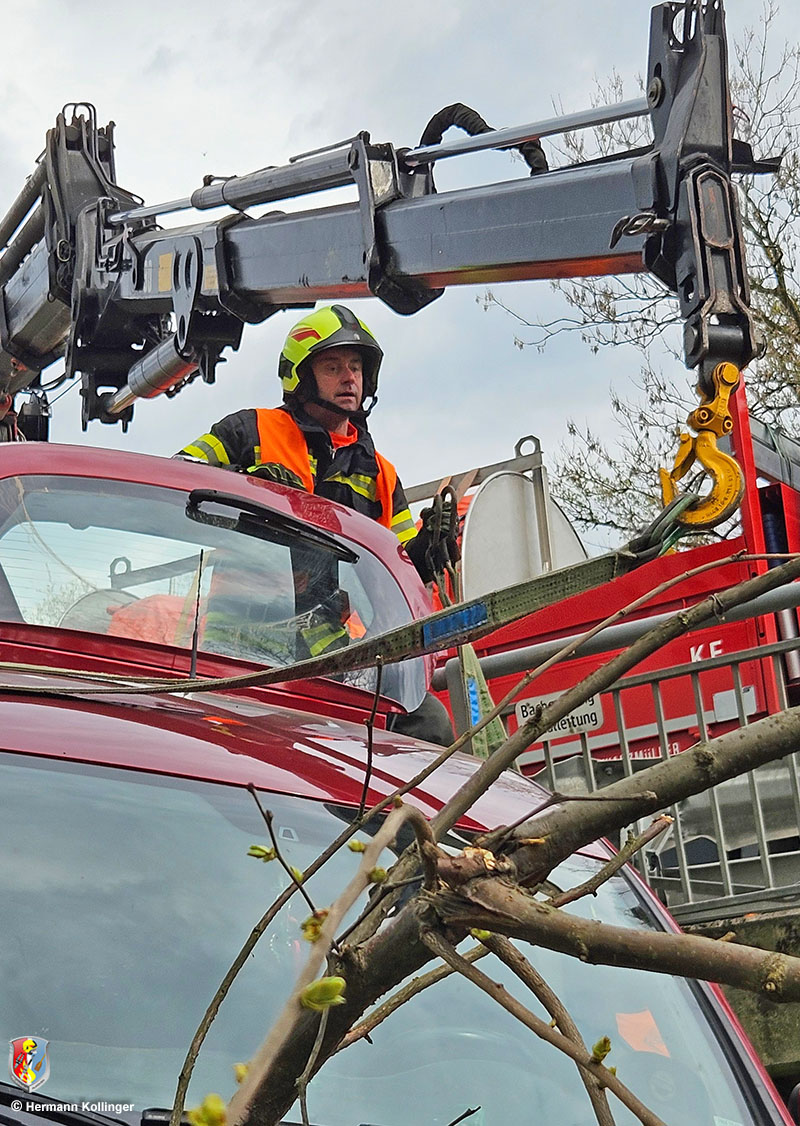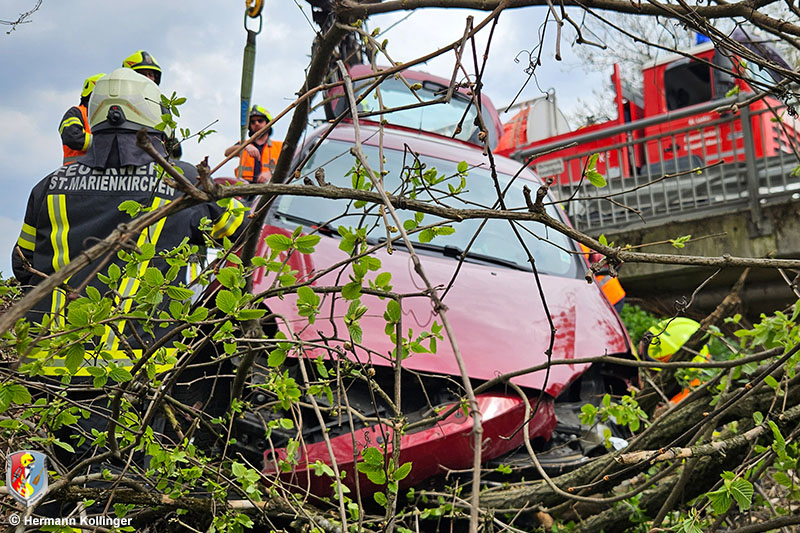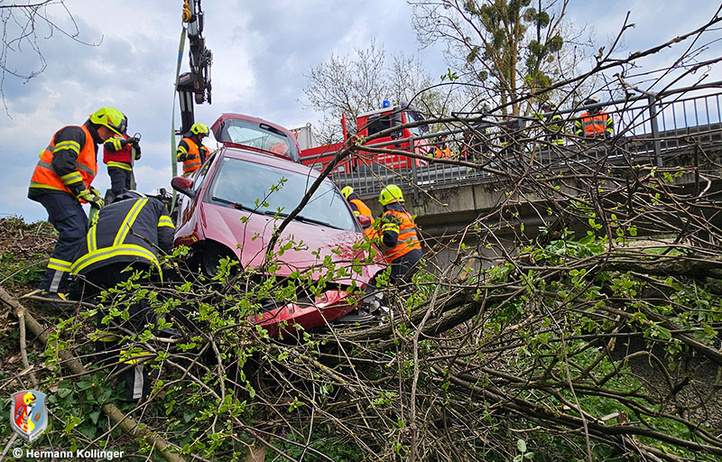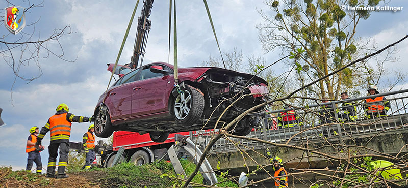 Da seitens den Einsatzkräften der FF St. Marienkirchen an der Polsenz festgestellt wurde, dass der Pkw massiv aufsitzt, wurde von einer Bergung per Seilwinde Abstand genommen. Mit 15.06 Uhr wurde im Auftrag der FF St. Marienkirchen die Feuerwehr Alkoven mit dem Kranfahrzeug alarmiert.