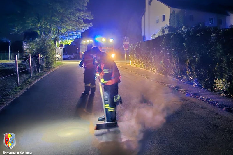 Anlass war die Meldung einer Betriebsmittelspur eines Kraftfahrzeuges im Bereich Hartheim bis zur Jet-Tankstelle beim Kreisverkehr B 129 / B 133. Nach der Erkundung durch eine Fahrzeugbesatzung wurden an verschiedenen Stellen schmierige Streifen am angegebenen Ort festgestellt. Es handelte sich um Kühlflüssigkeit.