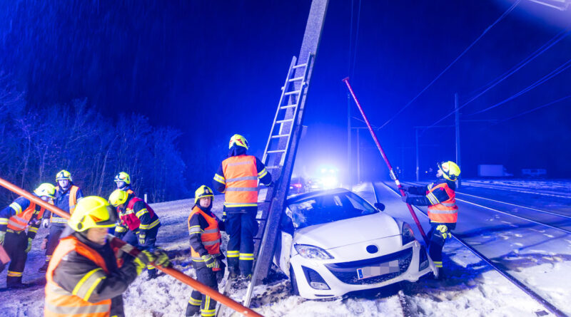 12.01.2026: Lilo-Mast nach Kollision durch Pkw auf glatter B 129 in Schräglage
