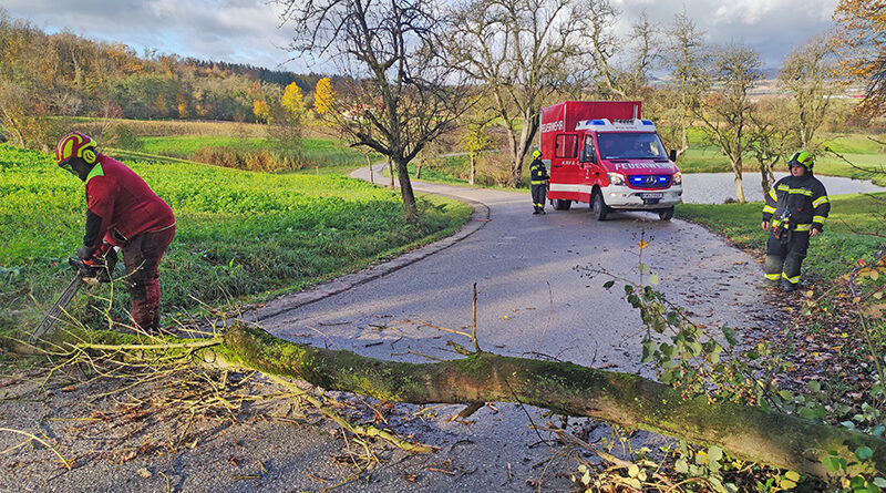 03.11.2025: Umgestürzter Baum blockiert Fahrbahn in Staudach