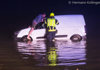 13.12.2023: Fahrzeugbergung mit Personenrettung aus überfluteter Straßenzone in Gstocket