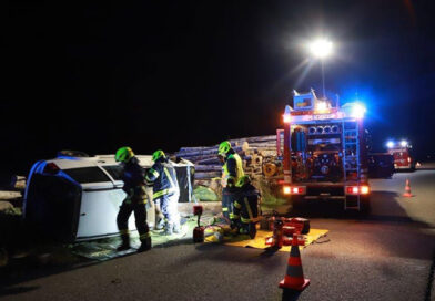 07.08.2020: Pkw-Unfall Kreisverkehr B 129 → der nächste Lichtmast ist hin
