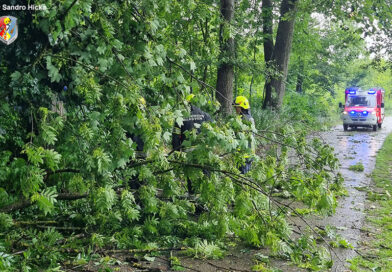 08.06.2025: Baum während kurzem Gewitter in Gstocket über Fahrbahn gestürzt