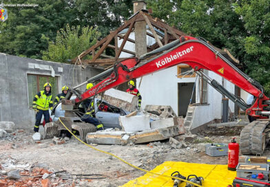31.07.2025: Auto nach Gebäudeeinsturz begraben → FF Alkoven übt – abgespeckt – in Abbruchgebäude
